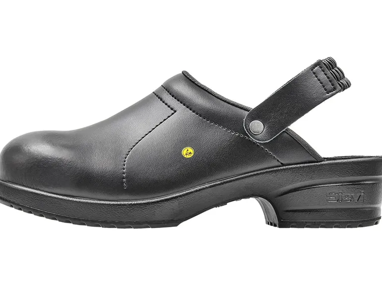 Puukengän mallinen työkenkä, klassinen ja monipuolinen ESD-malli. Päälliosa on kestävää mustaa PU-nahkaa. Kengän käännettävän kantaremmin elastinen resori parantaa istuvuutta. Pitävä polyuretaanipohja, joka kestää öljyä ja erilaisia kemikaaleja.