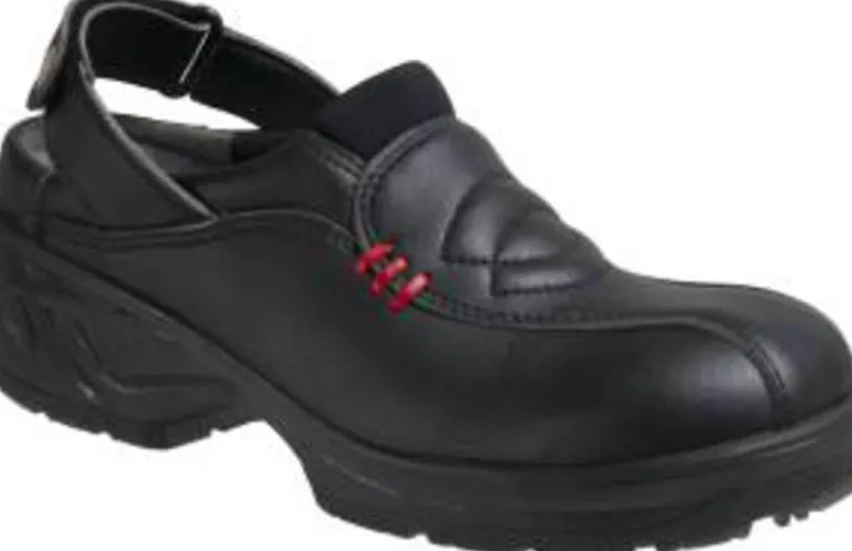 Työkenkä, jossa on muovinen kärkivahviste ja kantahihna, PU-ulkopohja ja mikrokuitupäällinen. Toimisto-, keittiö-, siivous- ja hoivatyöhön.