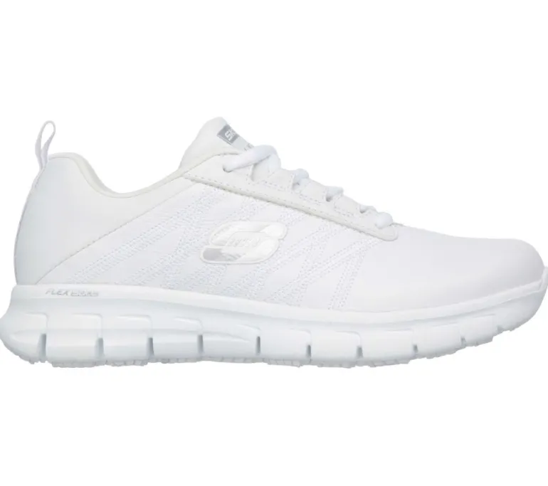 Skechers Work Sure Track on naisten liukastumisenestolla varustettu työkenkä, jossa on lisätilaa jalan etuosassa. Kengän päällysosa on nahkaa, minkä ansiosta kenkä on erityisen kestävä. Lisäksi kengän välipohja vaimentaa iskuja. Kengässä on muotoutuva Memory Foam -sisäpohja, joka lievittää jalkojen rasitusta. Ulkopohja on liukutestattu niin, että se täyttää tiukimmat turvallisuusvaatimukset.
