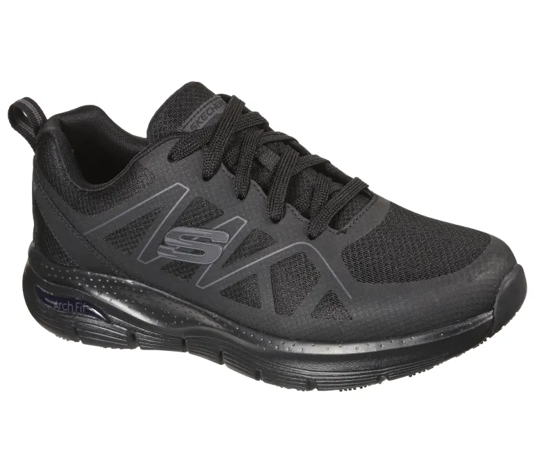 Skechers Work Arch Fit on työkenkä, joka sopii sekä vapaa-ajan että työkäyttöön. Irrotettava Arch Fit -pohjallinen tukee jalan holvikaarta ja tarjoaa vakautta ja tasapainoa, jotta voit liikkua vaivattomasti. Pehmustettu ja iskunvaimentava välipohja. Joustavassa ulkopohjassa on liukastumisenesto. Pehmustettu kantapää lisää mukavuutta.