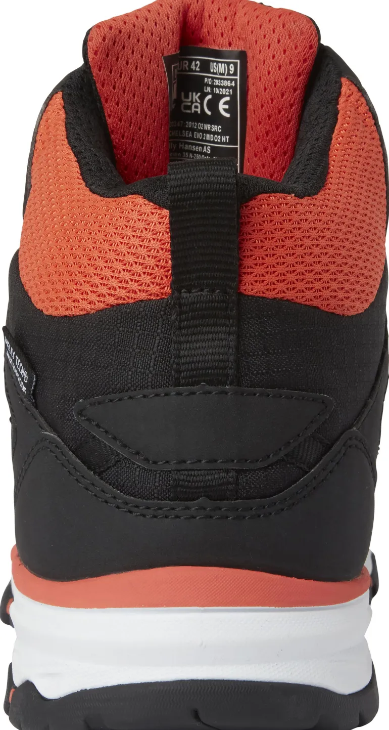 Helly Hansen Workwear Chelsea Evolution 2 Mid on työkenkä, joka soveltuu erinomaisesti työympäristöihin joissa on tarvetta kevyemmin suojaaville ja hyvän käyttömukavuuden omaaville työkengille. Kengässä on vaimentava EVA-välipohja ja Ortholite X25 Hybrid-pohjallinen parempaa käyttömukavuutta varten. Kengän vuorimateriaali on hengittävää ja kosteutta siirtävää sekä vähintään puolet materiaalista on uudelleenkierrätettyä. Uusi virtaviivainen muotoilu sisältää myös heijastavia osia parempaa näkyvyyttä varten työpaikalla ja sen ulkopuolella. Kenkä on soveltuva monipuoliseen käyttöön juuri vedenpitävän ominaisuuden ansiosta.