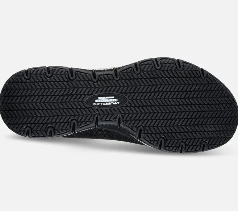 Skechers Work Relaxed Fit on liukastumisenestolla varustettu naisten työkenkä, jossa on lisätilaa jalan etuosassa. Kengän päällysosassa on hengittävää mesh-kangasta. Kengässä on lisäksi pehmeä ja hengittävä Memory Foam -sisäpohja. Ulkopohja on liukutestattu niin, että se täyttää tiukimmat turvallisuusvaatimukset.