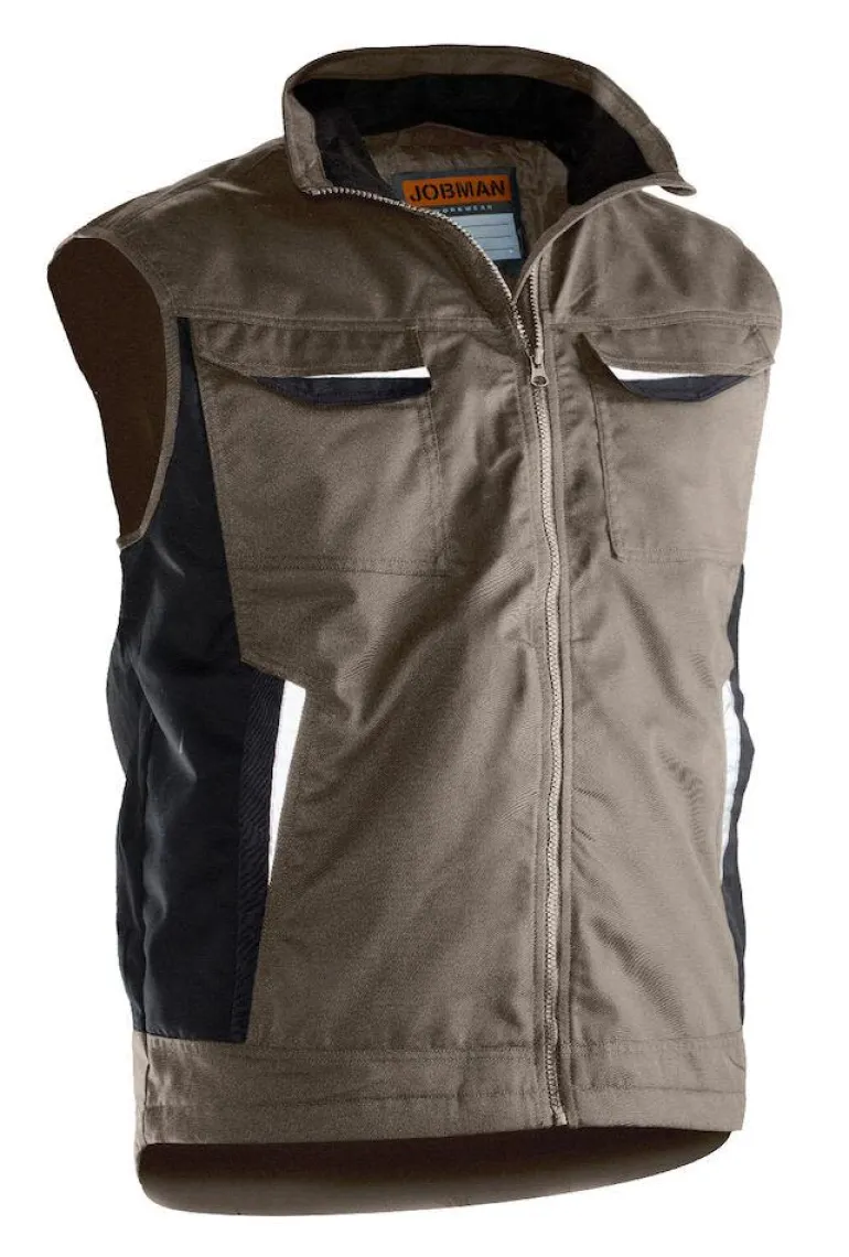 Jobman 7517 on tikkivuorattu työliivi helppohoitoista polyesteriä/puuvillaa. Kaksi rintataskua tarranauhakiinnityksellä, joista vasemmassa rintataskussa D-rengas henkilökorttia varten.