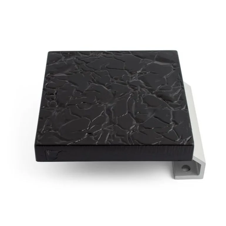 Työntölevy, jossa alumiinikiinnikkeet. Levy kuvioitua akryylia. Mukana ruuvit ja M6-hylsymutterit läpikiinnitykseen. ø 100 mm. Pariasennuksessa oven maksimivahvuus on 60 mm.