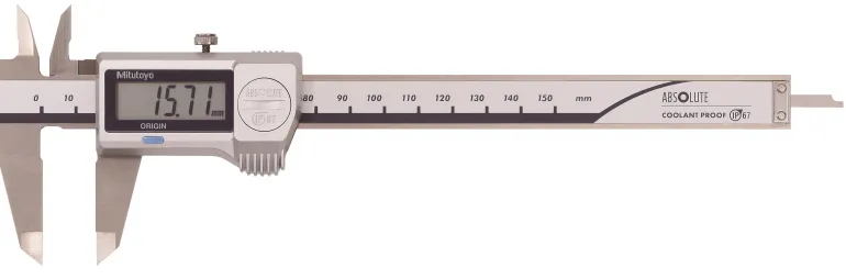 Työntömitta ABSOLUTE-järjestelmällä, jossa mitta-asteikon pinnalla oleva lika, vesi tai öljy ei vaikuta tunnistussignaaliin. Työntömitassa on LCD-näyttö, jossa on selkeät 9 mm korkeat numerot. Se on valmistettu ruostumattomasta teräksestä ja siinä on karkaistut ja tarkkuushiotut mittauspinnat. Ulkoiset ja sisäiset mittausjalat on teroitettu pienten reikien ja urien mittaamista varten. Automaattinen päälle/pois-toiminto ja virta SR-44-pariston kautta.