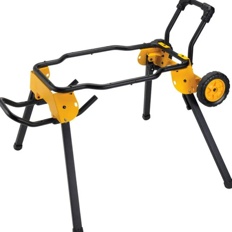 Kokoontaitettava työpöytä, jossa on isot pyörät helppoa kuljetusta ja säilytystä varten. Sopii seuraaville laitteille: DEWALT DW745 ja DWE7491.