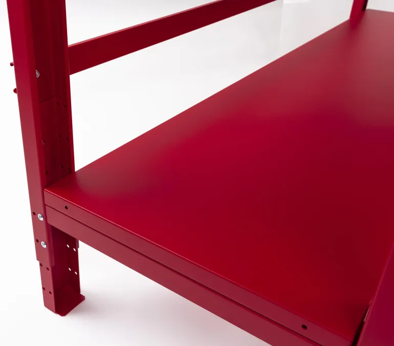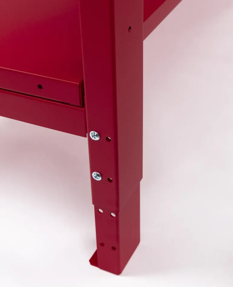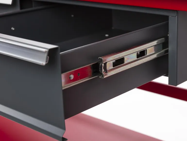 PELA 502976 on tukeva työpöytä, jossa on laatikkosarja ja laskutaso. Työpenkin mitat ovat 650 x 2000 mm, se on teräsrakenteinen ja siinä on metallipinnoitettu vanerilevy. Säädettävät jalat työskentelykorkeudella 900-1155 mm. Laatikkosarja Profi, 3 vahvaa laatikkoa työpöydälle 502978. Kaikki laatikot ovat kuulalaakeroituja ja niissä on lukot, syvyys 570 mm, leveys 370 mm ja korkeus 130 mm. Hyllytaso työpöydän jalkojen väliin asennettavaksi, täydellinen ylimääräinen laskutila.