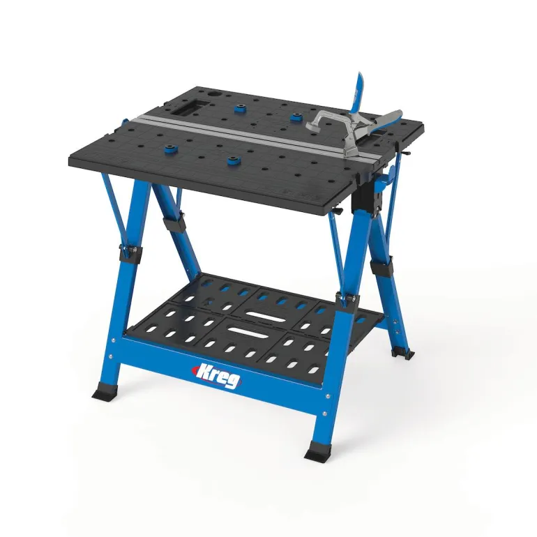 KREG Mobile Project Center on työpöytä, jonka monipuolinen työpinta sopii erityyppisiin työ-, korjaus- ja puuntyöstöprojekteihin. Työpöytä tarjoaa vankan alustan kaikentyyppisille projekteille ja se voidaan myös taittaa ja sijoittaa sivuun. Puristimen avulla pidät materiaalit paikallaan työskenneltäessä. Työpöytä kestää jopa 158 kg kuormituksen ja siinä on sisäänrakennettu säilytyshylly. Mobile Project Center on myös mukautettu käytettäväksi Kregin eri työkalujen kanssa.