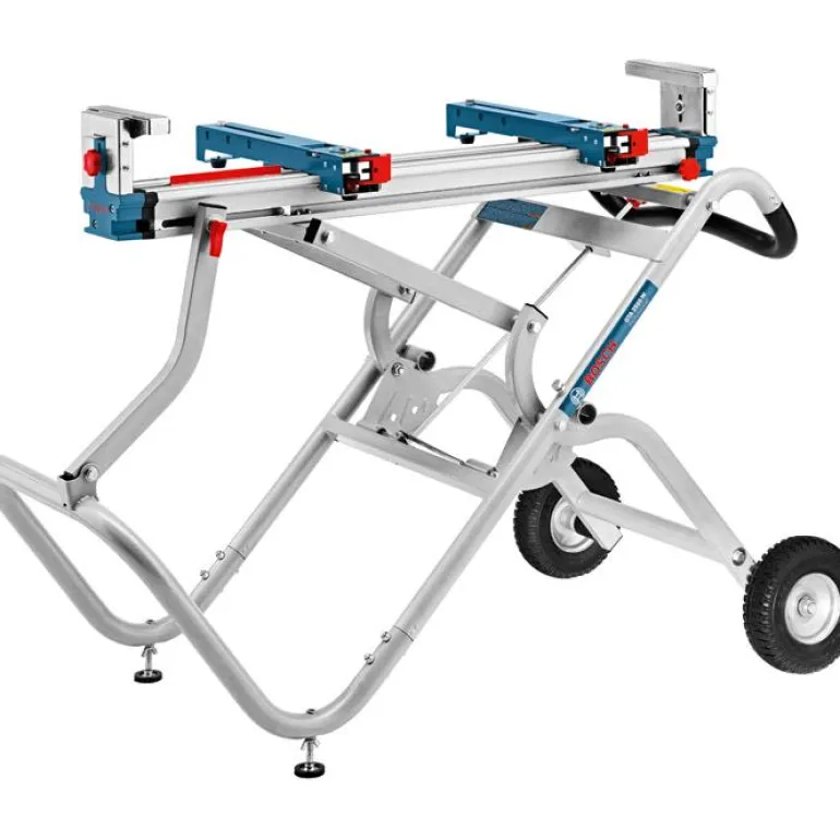 Bosch GTA 2500 W Professional on kätevä työstöpöytä/kärry katkaisu- ja jiirisahoille sekä yhdistelmäsahoille. Työpöydän suurien kumipyörien avulla sahaa on helppo kuljettaa myös epätasaisella rakennustyömaalla. Lisäksi kärryn jalkoja voi säätää niin, että sen asento on aina vakaa kaikilla alustoilla.