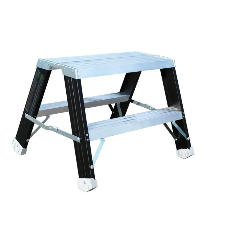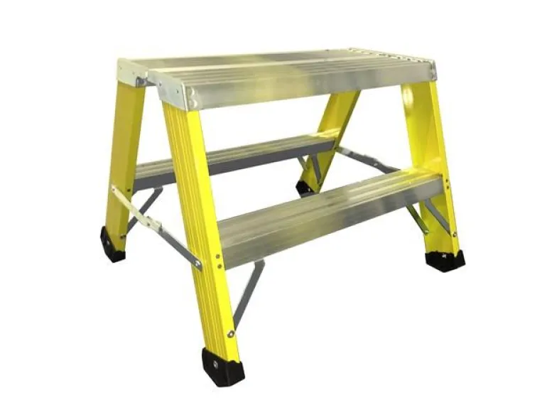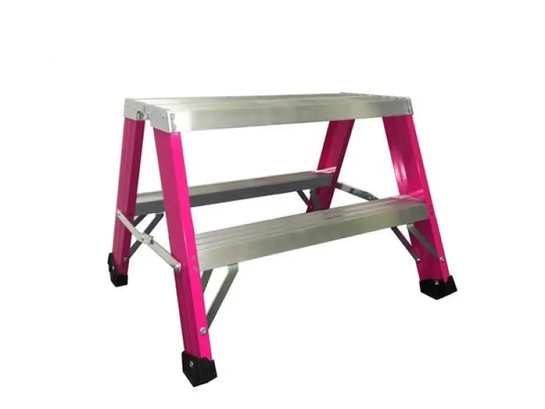 Vakaa ja tukeva työpukki. Alustan mitat 605 x 205 mm, askelmasyvyys 81 mm. Vahvoilla lattiasuojilla tikkaat seisovat tukevasti alustaa (maata) vasten. Lakatut yksityiskohdat estävät käsien ja vaatteiden mustumisen.