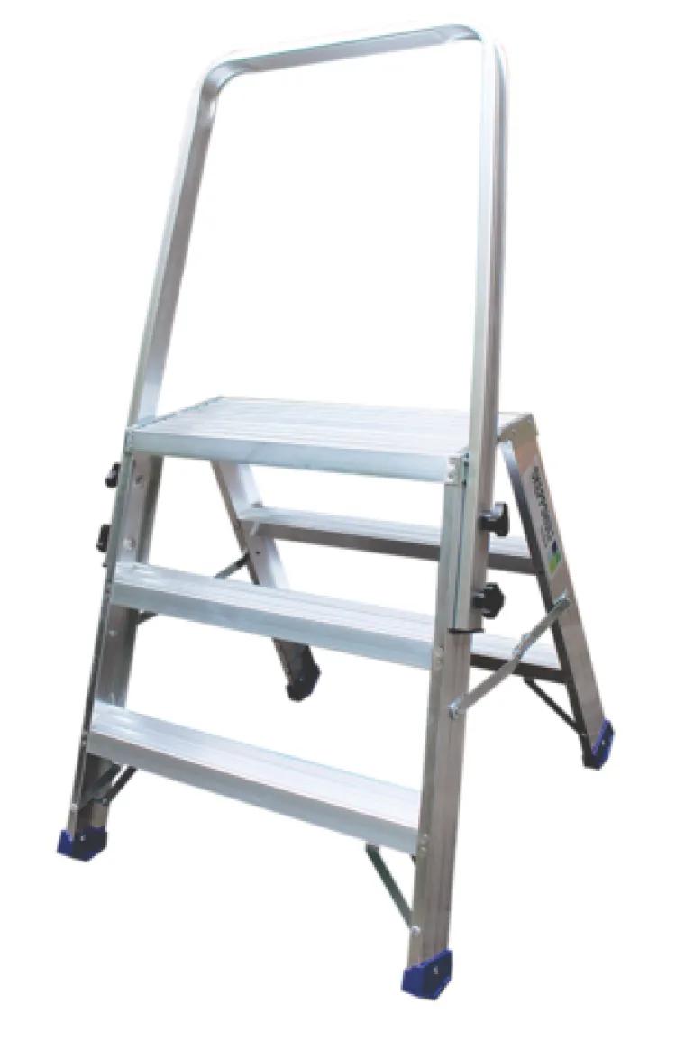Vankka ja tukeva työpukki alumiinista, joka on varustettu turvakaiteella. Turvakaide tekee työskentelystäsi entistä vakaampaa ylimmällä alustalla. Hydraulisesti niitityt askelmat ja suuri alusta. Alustan mitat 605 x 250 mm ja askelmaleveys 81 mm. Vahvilla luistonesto- ja lattiasuojilla tikkaat seisovat tukevasti alustaa (maata) vasten. Kaikki jalat ovat vahvistettu ja askelmien välissä on lisätuki, joka antaa työpukille pidennetyn käyttöiän.