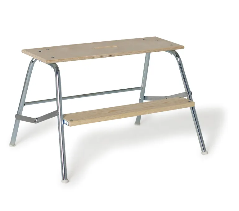 Työpukki sähkösinkityistä teräsputkista – ylin askelma on vedenpitävää vaneria. Työpukissa, jossa on 2-5 askelmaa, ylin askelma on 750×250 mm, ja 6.-7. askelmat 620×250 mm.