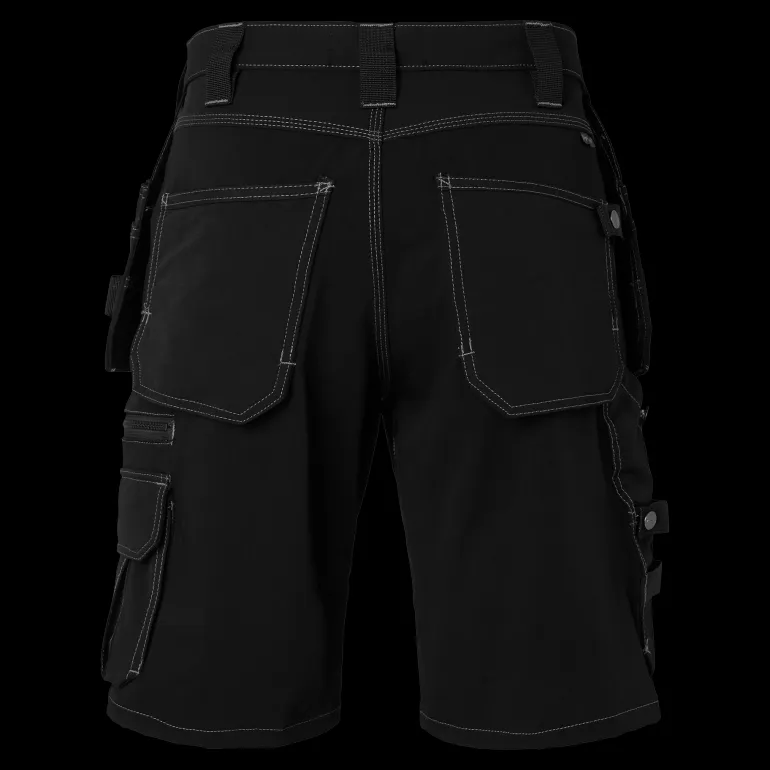 Työshortsit modernilla muotoilulla neljään suuntaan joustavaa kangasta. Kaksi etutaskua ja kaksi vahvistettua palkeellista takataskua. Riipputaskut Cordura®-vahvikkeilla.