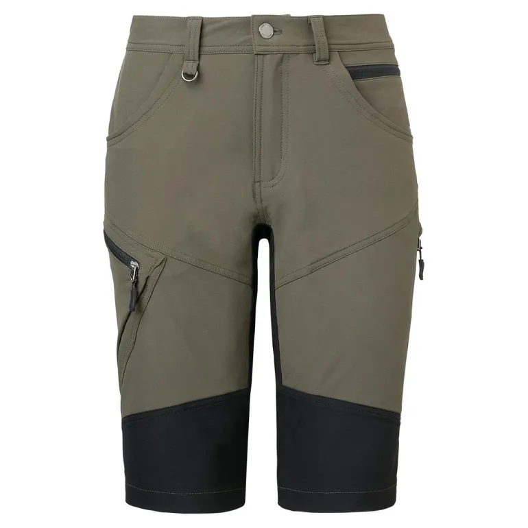 Käytännölliset 5-taskun joustavat hybridishortsit naisille, jotka takaavat optimaalisen liikkumisvapauden ja mukavuuden. Reisitaskujen ja takataskujen vetoketjuissa on heijastimelliset vetimet.