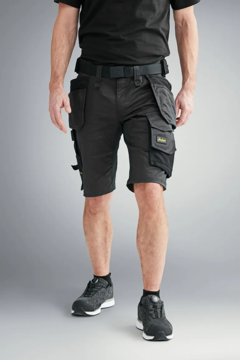 Kestävät ja joustavat työshortsit, joissa on riipputaskut. Strategisesti sijoitettu 4-suuntainen jousto takakappaleessa ja haarassa lisää joustavuutta ja mukavuutta. Shortseissa on tarranauhallinen työkalupidike, klassiset riipputaskut, reisitasku puukkokiinnikkeellä, edessä kiinnityssilmukat ja avaimenpidike ja klassinen cargo-tasku henkilökorttipidikkeellä.