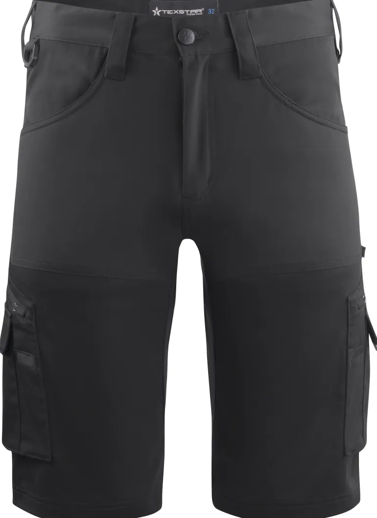 Työshortsit, joissa mukava ja liikkuva nelisuuntainen jousto. Kaksi fiksua vetoketjullista reisitaskua, pienempi läppätasku, johon mahtuu iso puhelin, ja kynätasku oikeassa lahkeessa. Shortseissa on lisäksi Chino-tyyliset piilotakataskut, oikealla puolella rahtikirjatasku (jossa sisäänrakennettu tuumamittatasku) ja yksi D-rengas. Materiaali: 35 % puuvilla, 63 % polyesteri, 2 % spandex, 250 g/m².