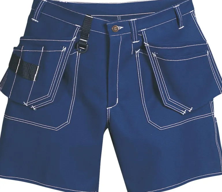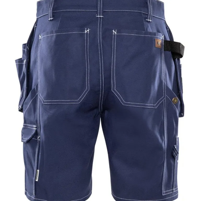 Työshortsit FAS-puuvillaa, edessä kaksi vapaasti roikkuvaa CORDURA-vahvisteista sisääntaitettavaa naulataskua – ylimääräinen tasku, 3 pienempää taskua ja työkalulenkit. Shortsit on Öko-Tex-sertifioitu.