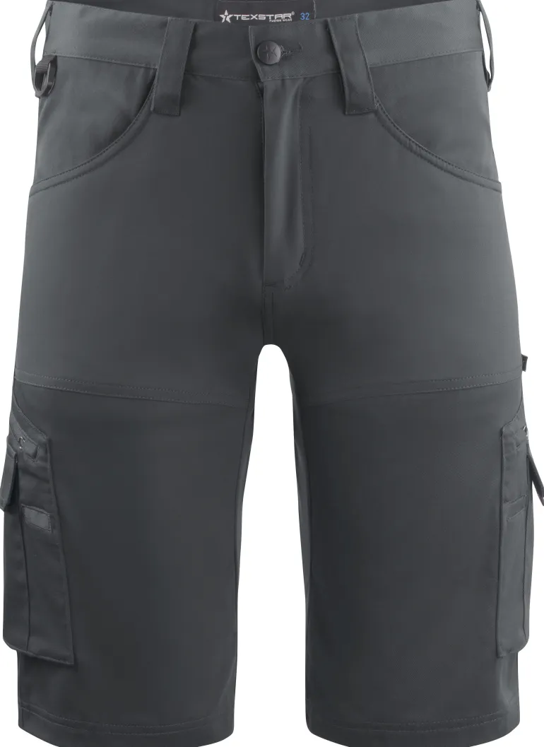 Työshortsit, joissa mukava ja liikkuva nelisuuntainen jousto. Kaksi fiksua vetoketjullista reisitaskua, pienempi läppätasku, johon mahtuu iso puhelin, ja kynätasku oikeassa lahkeessa. Shortseissa on lisäksi Chino-tyyliset piilotakataskut, oikealla puolella rahtikirjatasku (jossa sisäänrakennettu tuumamittatasku) ja yksi D-rengas. Materiaali: 35 % puuvilla, 63 % polyesteri, 2 % spandex, 250 g/m².