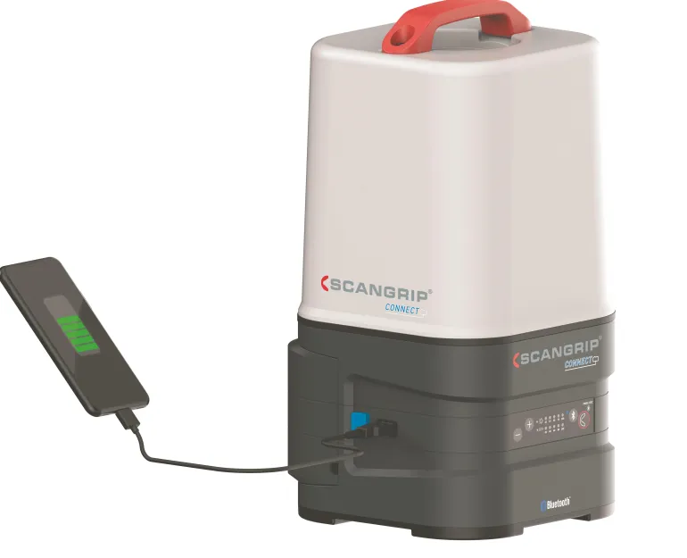 Työvalaisin Bluetooth-ohjauksella ja 10 000 luumenin valovirralla. AREA 10 CONNECT valaisee työskentelytilaa laajasti miellyttävällä ja häikäisemättömällä valolla. Valittavissa kaksi valotilaa: 360 astetta valaiseva ja 180 astetta valaiseva. Vaihtoehtoisten valotilojen lisäksi valaisin on varustettu sisäänrakennetulla 5-portaisella himmennystoiminnolla. Kompakti muotoilu tukevalla kantokahvalla, ripustuskoukulla ja helpolla kiinnitettävyydellä jalustaan mahdollistavat monipuolisen käytön. Valaisin on helposti kiinnitettävissä Scangrip TRIPOD-jalustaan ja on yhteensopiva kaikkien suurempien valmistajien 18V-akkujen kanssa Scangripin CONNECTOR-adapterin avulla (ei sisälly toimitukseen). Lisäksi lisätarvikkeena löytyvä POWER SUPPLY CONNECT mahdollistaa valaisimen kytkemisen suoraan verkkovirtaan. Valaisimessa on myös akun tilan ja valokirkkauden ilmaisin, sisäänrakennettu varavirtalähde (Powerbank) mobiililaitteiden latausta varten sekä vara-akkujärjestelmä, joka varmistaa 50 minuutin toiminnan 1000 luumenin valovirralla pääakun tyhjentyessä. Bluetooth-ohjaus mobiilisovelluksen avulla mahdollistaa jopa neljän valaisimen ohjauksen mobiililaitteella. 5-portaisella himmennystoiminnolla voit mukauttaa valaisimen tehoa käyttötilanteen mukaan.