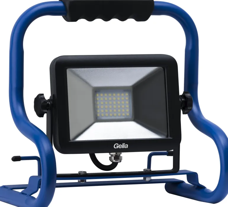 Gelia TARGET T30S on käytännöllinen ja kätevä LED-työvalaisin lattiatelineellä. Työvalaisimessa on ergonominen ja mukava kantokahva, jonka avulla sitä on helppo kantaa mukana. LED-valaisimen kotelo on käännettävä, mikä helpottaa valon suuntaamista. Teräksestä valmistettu jalusta on varustettu kaapelitelineellä, johon kaapeli voidaan keriä, kun työvalaisin ei ole käytössä. Mukana 2 metrin kaapeli H05RN-F 3G1,5, jossa on maadoitettu pistotulppa. Suojausluokka IP65.
