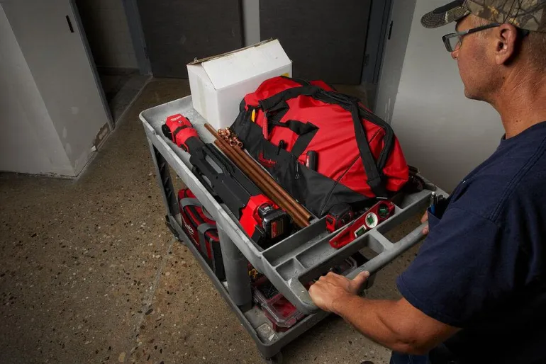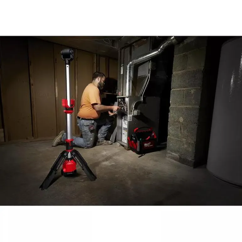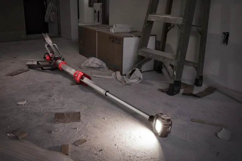 12 V työvalaisin, jonka teho on jopa 1400 luumenia. Säädettävä jalusta, jonka korkeus on 0,91–1,72 m.
