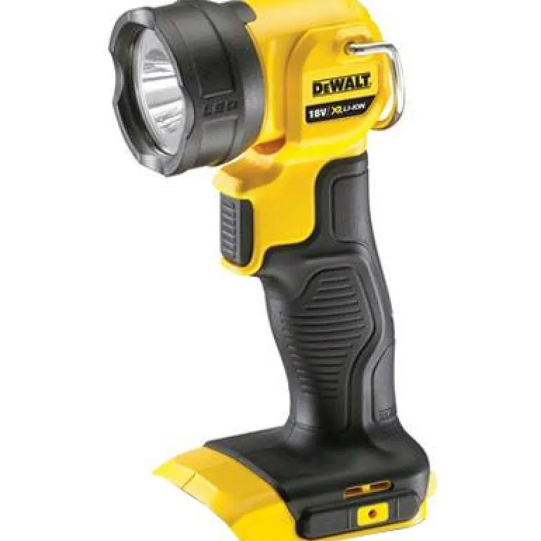 Työvalaisin, jonka valaisinpäätä voidaan pyörittää eri asentoihin. Valaisimessa on vyöpidike. Kumipinnoitettu kahva mahdollistaa varmemman, ergonomisen otteen. Toimii DEWALTin Li-ion 18 V:n akuilla.