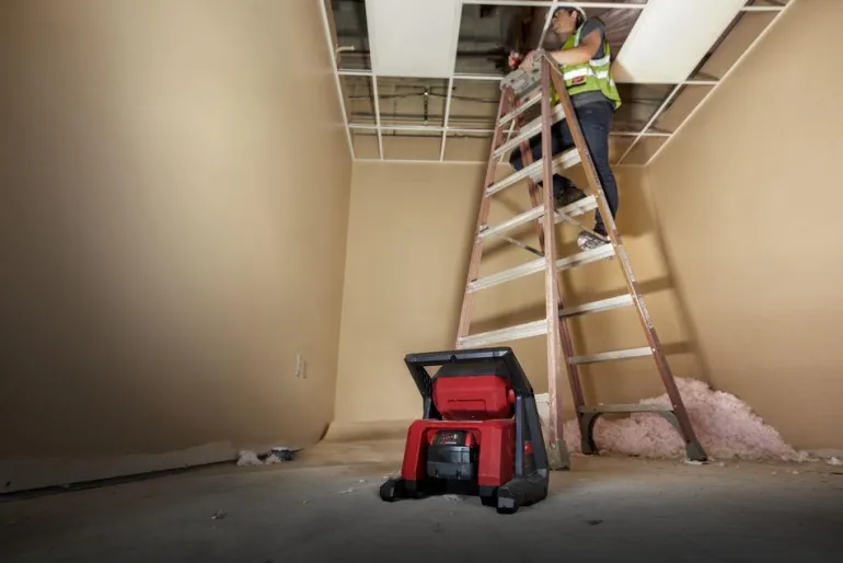 18 V tilavalaisin, joka tuottaa 4000 luumenin valovirran. Joustavan AC/DC-valinnan ansiosta lamppua voidaan käyttää myös verkkovirrassa. Työvalaisimessa on iskunkestävä rakenne ja turvakaari, joka suojaa lamppua ankarissa olosuhteissa.