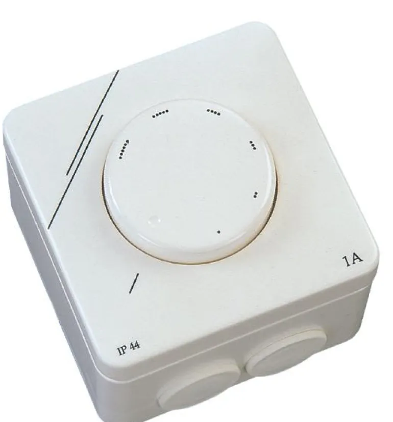 VRS yksivaihevaihtovirtamoottorien jatkuvaa käsiohjausta varten. Miniminopeus asetetaan kiertonupin alla olevalla ruuvilla.