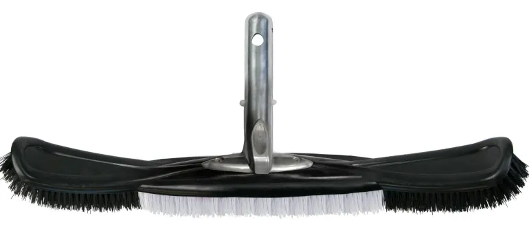 Alumiininen uima-allasharja, jonka leveys on 45 cm ja joka sopii teleskooppivarteen. Harja on käytännöllinen, tyylikäs ja kestävää ammattilaislaatua.