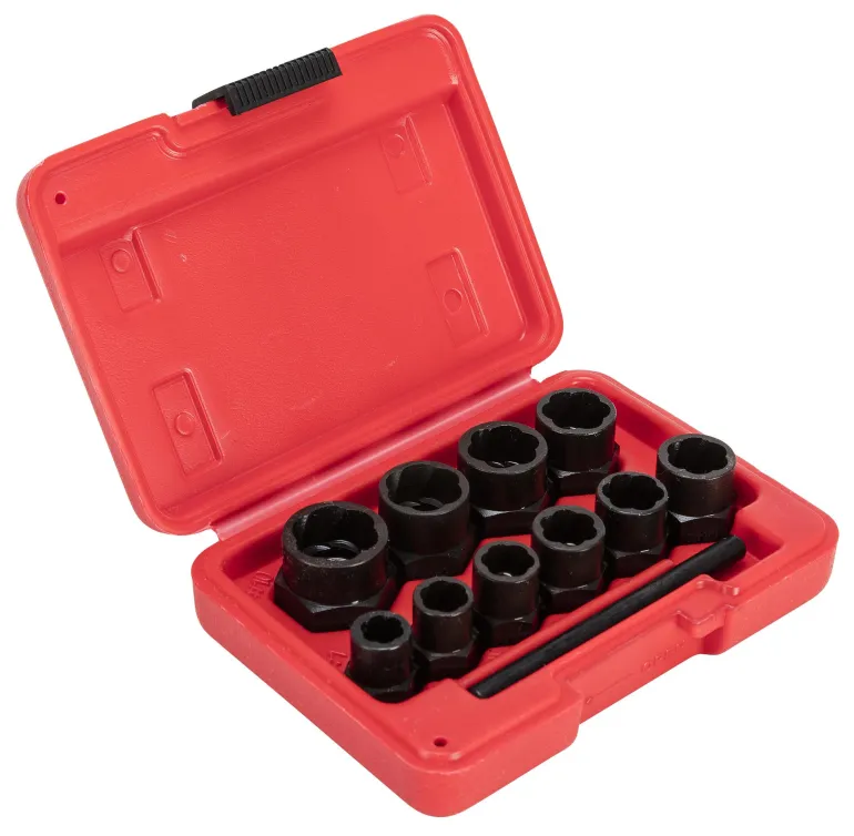 PELA 489225 on mutterien ja pulttien ulosvedinsarja (pultinirroitussarja), jossa on 10 erilaista hylsyä, jotka naputellaan vaurioituneen pultin tai mutterin päälle. Toimii erinomaisesti, kun kanta on pyöristynyt eikä tavallinen työkalu pidä.