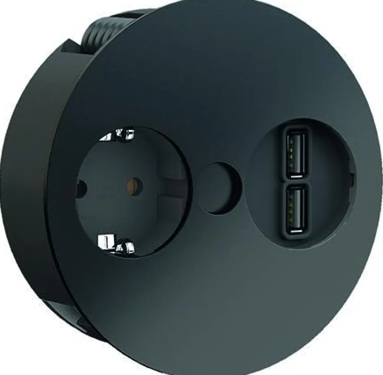 TWIST-pistorasia 1 x suko ja 1 x tupla-USB-latausmoduuli 3,1 A. Upotettava pistorasia keittiöön, toimistoon ja kalusteisiin. Tyylikäs ja kompakti muotoilu, joka on voittanut useita suunnittelupalkintoja. Korkealaatuinen.