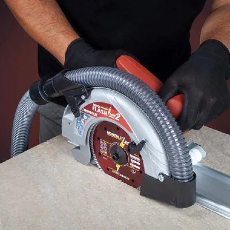 Montolit Moto Flashline MFL2 on upotussaha suurikokoisten laattojen leikkaamiseen. Sahan teho on 1600 W ja se on varustettu pölynimuriliitännällä Ø35 mm. Ohjainkiskot voidaan liittää yhteen ja niiden sahauspituus on enintään 3400 mm. Ohjainkiskojen alapuolella on luistonestosuoja, joka pysyy tiukasti alustaa vasten.