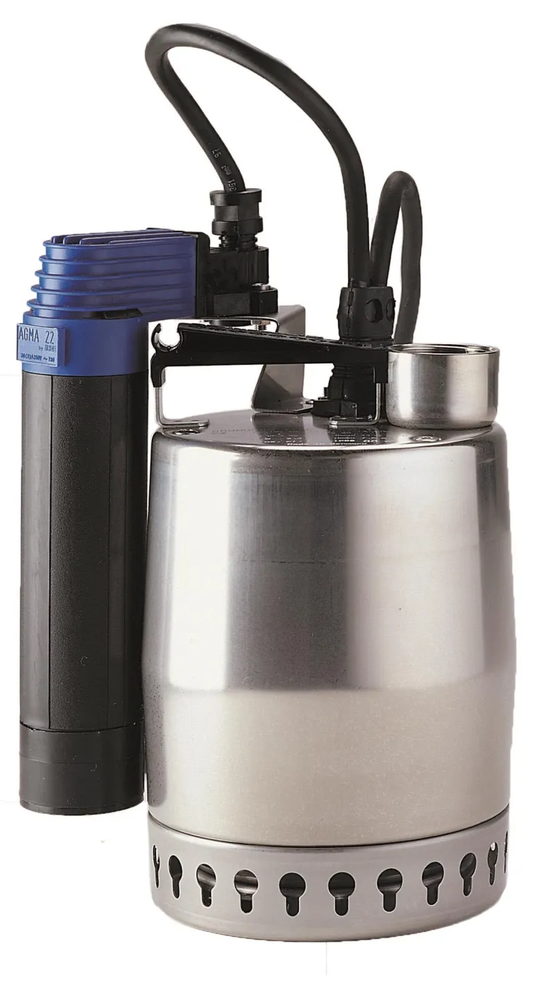 Ruostumattomasta teräksestä valmistettu uppopumppu (tyhjennyspumppu) syövyttämättömän ja harmaan veden pumppaamiseen. Maks. hiukkaskoko 10 mm. Pumpun pesä ja juoksupyörä ruostumatonta terästä. Virtakaapelin pituus 10 m.