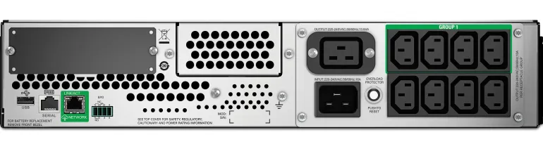 Tuloliitäntä C20, C13-lähtöjen lukumäärä 8 ja C19-lähtöliitäntöjen lukumäärä 1. Tuoteperheestä löytyy sekä torni- että räkkimallisia laitteita SmartSlot -hallintakorttimahdollisuudella. SMT-sarjan laitteissa on SmartConnect -ominaisuus, joka tarjoaa laitteiden etämonitoroinnin, kustomoitavat hälytykset, vikadiagnostiikan sekä firmware-päivitysten ajamisen. AVR eli automaattinen jännitteensäätö tasaa verkkojännitteen vaihteluita, ilman että laite siirtyy akkukäytölle. Tämä pidentää akun käyttöikää ja maksimoi laitteen varakäyntiajan. Tämä pidentää akun käyttöikää ja maksimoi laitteen varakäyntiajan. Smart-UPS -laitteet ovat EcoStruxure -yhteensopivia, sillä ne on varustettu SmartConnect ethernet -liitännällä, joka tekee UPSin etähallinnan -ja monitoroinnin entistä helpommaksi. Laiteessa on myös SmartSlot -verkkokorttipaikka, johon liitetyllä verkkortilla mahdollistetaan esimerkiksi UPSiin liitetyn laitteiston hallittu alasajo. Takuu laitteella 3 vuotta ja akustolla 2 vuotta.