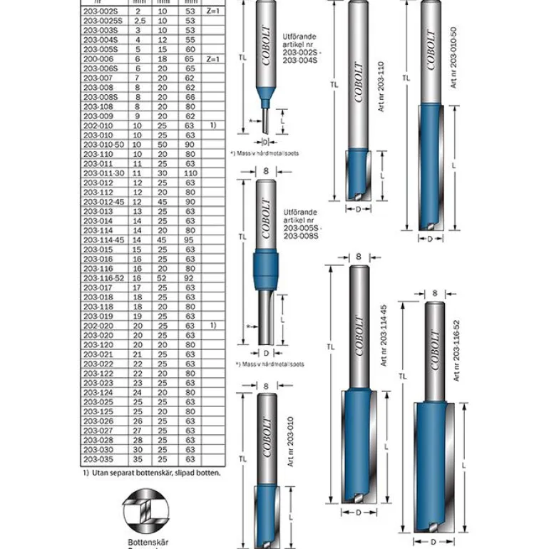 - Sisäänpäin käännetty pohjaleikkuri, joka on suunnattu 90° sivuleikkureihin nähden ja hiottu yhdessä niiden kanssa