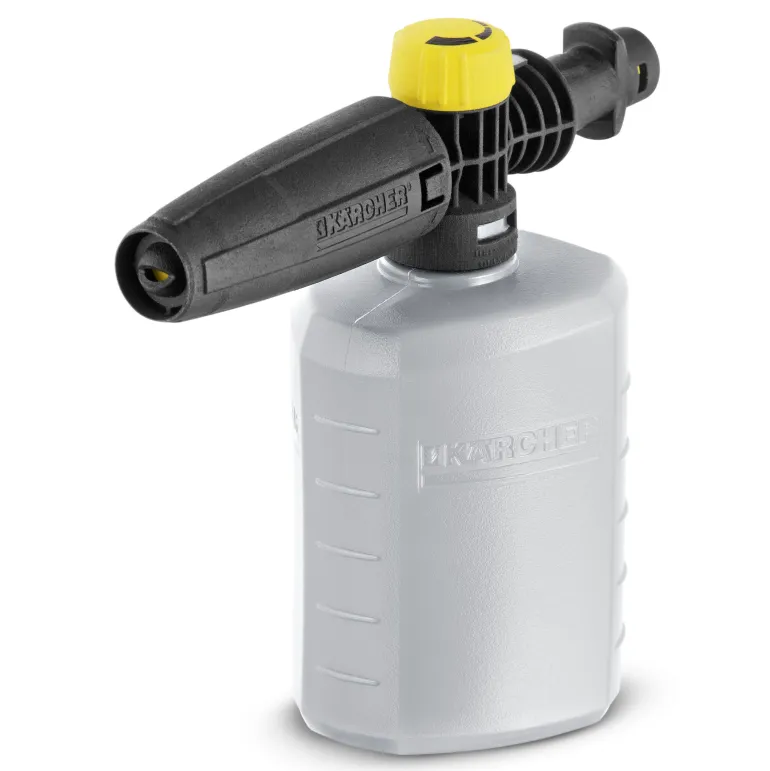 FJ 6 -vaahdotin pesemiseen tehokkaasti vaahdon avulla. FJ 6 -vaahdotin sopii pesuaineen levittämiseen esimerkiksi maali-, lasi- ja kivipinnoille. Ihanteellinen ajoneuvojen, puutarhakalusteiden, julkisivujen, portaikkojen, asuntovaunujen, seinien, kiveysten ja muun vastaavan pesuun. Säiliötilavuus 0,6 litraa. Kaada Kärcher-pesuaine suoraan vaahdottimeen, kiinnitä suutin pesukahvaan ja levitä vaahto. Pesuaineen annostelu voidaan helposti säätää vaahdottimesta. Suihkun tasoa voidaan säätää tarpeen mukaan. Sopii kaikkiin K 2 – K 7-sarjojen kuluttajapainepesureihin. Ihanteellinen käytettäväksi Kärcher Ultra Foam Cleaner -pesuaineen kanssa.