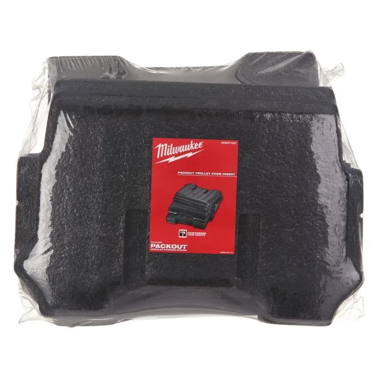 Milwaukee Packout on vaahtokuminen sisäosa, joka suojaa työkalujasi varastoitaessa. Vaahtokumisen sisäosan voi leikata haluttuun kokoon, ja yhdessä pakkauksessa.