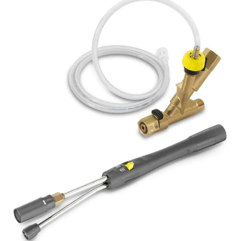 Vaahtosarja, joka sisältää vaahtosuuttimen ja kaksoishuuhteluputken käytettäväksi Kärcherin painepesureiden kanssa puhdistusta tai desinfiointia varten.