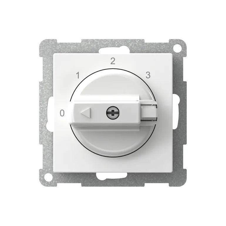 Sektorivirtakytkin 400V ja 16A. Lukittavalla nupilla ja ruuviliittimellä, asennettavaksi upotettavaan laitekoteloon c/c 60 mm.
