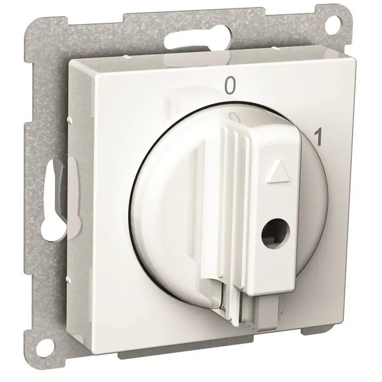 400 V ja 16 A vaihtokytkin lukittavalla nupilla, ruuviliitännällä ja upotettavalla asennuksella kytkentärasiaan c/c 60 mm. Pinta-asennukseen käytetään 35 mm:n rasiaa.