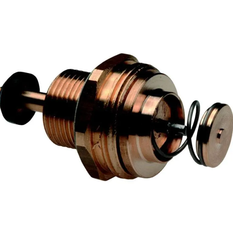 Vaihtosisäosa vanhempaan jäähdyttimen venttiiliin Gbg/HE-RVO vuodelta 1957 ja TA-RVO/DMA 10. Sisäkierre W18,9 ×19″ DN10 3/8″ ja ulkoisnn O-rengastiiviste, messinkiä.