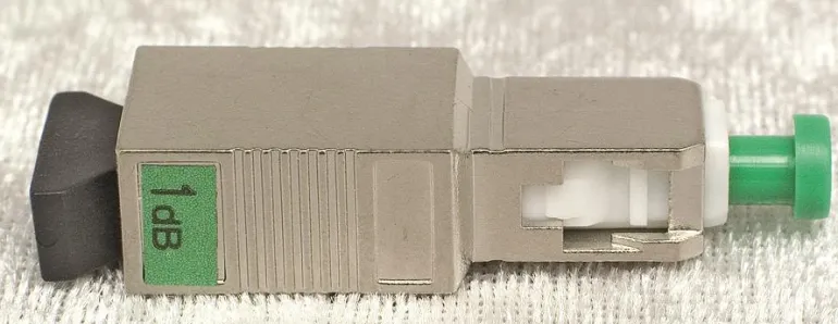 Kiinteä vaimennin jossa SC/APC-koskettimet ja 1-10 dB vaimennus.