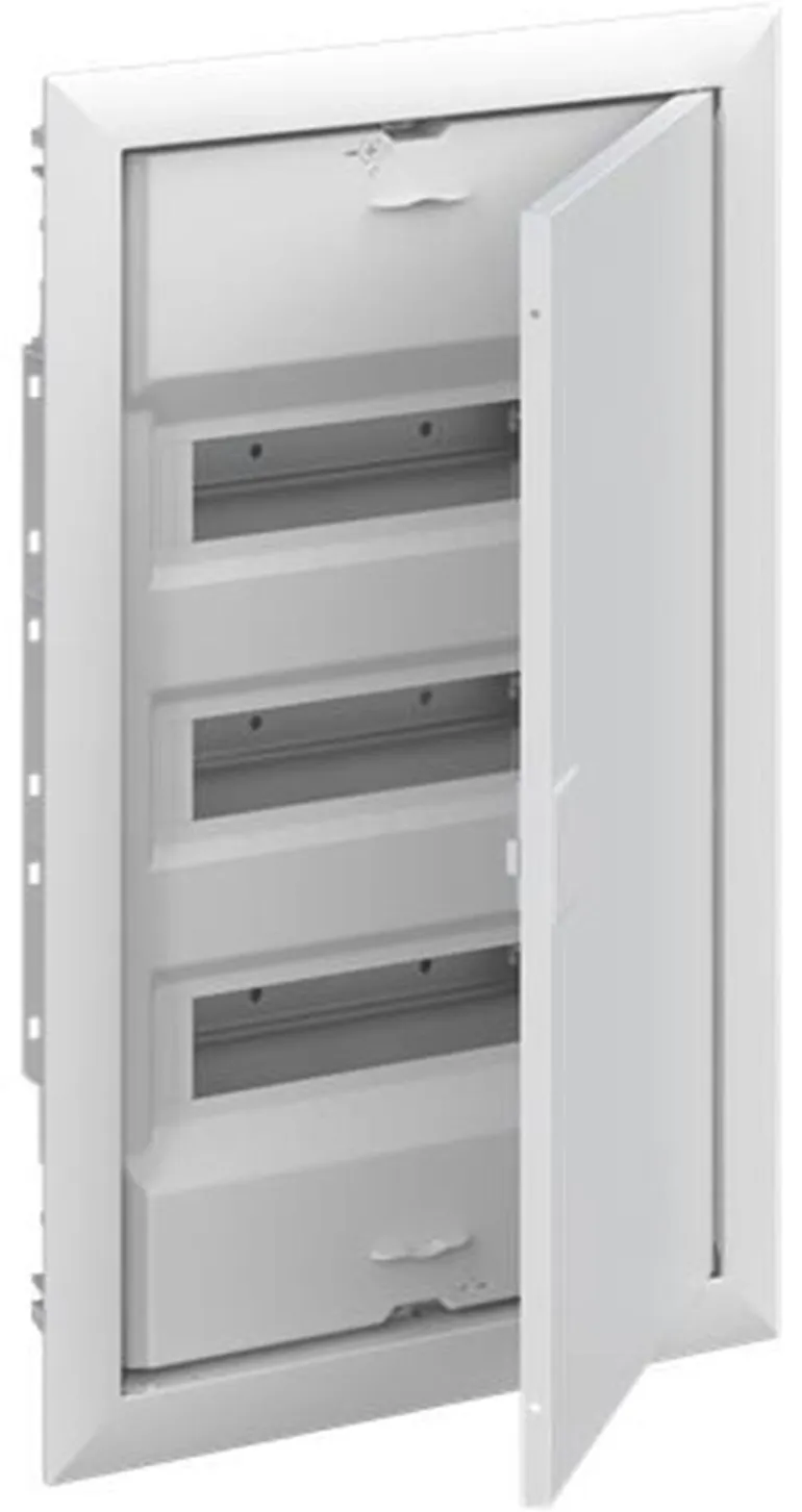 Vakiokeskuskotelo uppoasennukseen, sarja UK600, ovikehyksellä ja ovella, kotelointiluokka II (kaksoiseristetty) ja IP30. Sovellettavat standardit: EN 60670-24, IK-koodi 07. Nimelliskäyttöjännite 400 V AC 50/60 Hz, nimellisvirta 63 A, hehkulangan resistanssi 850 °C, jauhemaalattu, RAL 9016, kestomuovinen kotelo, jossa kehys ja ilmastoitu ovi, teräslevyovi, TIP-suljin, oven avauskulma 120°, oven sarana oikealla tai vasemmalla, N/PE ja integroitu kaapelikiinnike.