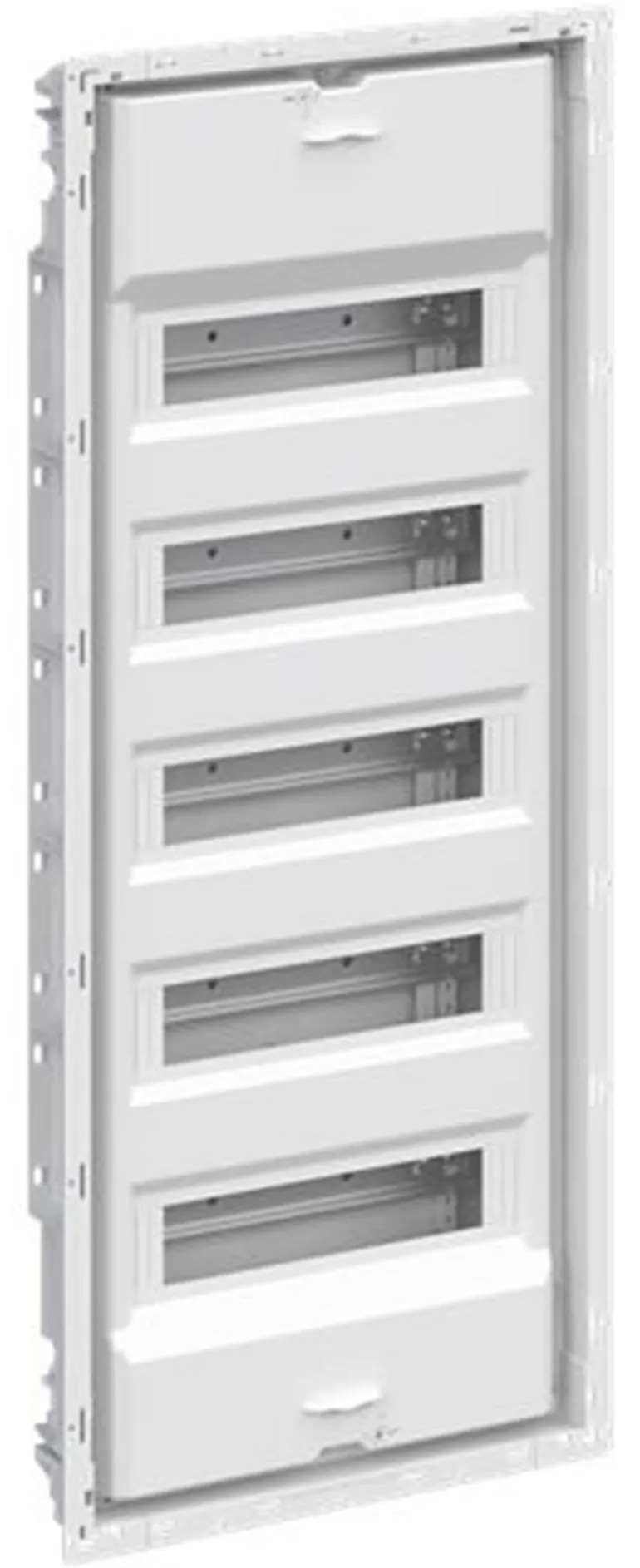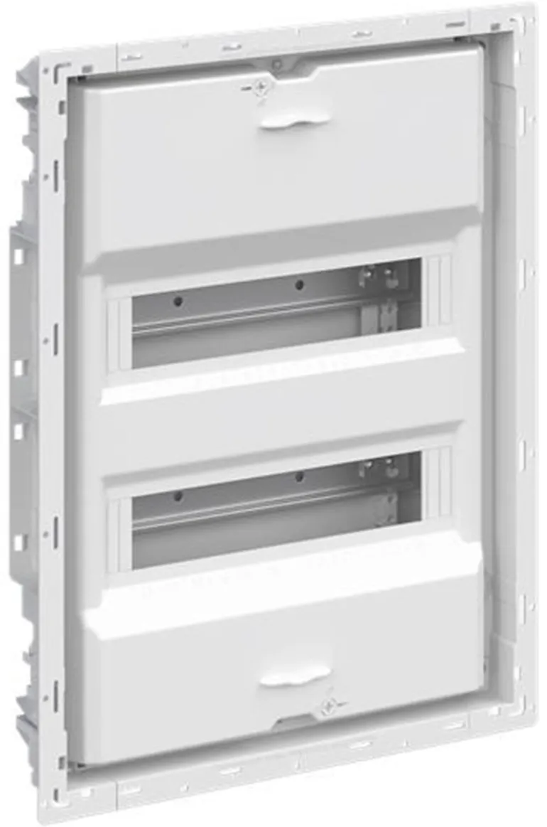 Vakiokeskuskotelo uppoasennukseen, sarja UK600, ovikehyksellä ja ovella, kotelointiluokka II (kaksoiseristetty) ja IP30. Sovellettavat standardit: EN 60670-24, IK-koodi 07. Nimelliskäyttöjännite 400 V AC 50/60 Hz, nimellisvirta 63 A, hehkulangan resistanssi 850 °C, jauhemaalattu, RAL 9016, kestomuovinen kotelo, jossa kehys ja ilmastoitu ovi, teräslevyovi, TIP-suljin, oven avauskulma 120°, oven sarana oikealla tai vasemmalla, N/PE ja integroitu kaapelikiinnike.