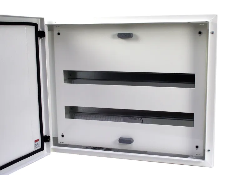 Ruostumattomasta teräksestä valmistettu levykeskus kestää todella vaikeita olosuhteita, kuten maatalous- ja teollisuusympäristöjä. Sisäosa pysyy paikallaan yksinkertaisilla kiinnikkeillä koko ja se voidaan taittaa 90° kulmaan asennuksen tai säätöjen aikana, jolloin työskentelytila on miellyttävämpi ja ulostulokaapeleiden loppuasennus helpompi. Ovessa on kääntölukko, mutta se voidaan tarvittaessa varustaa avaimella.