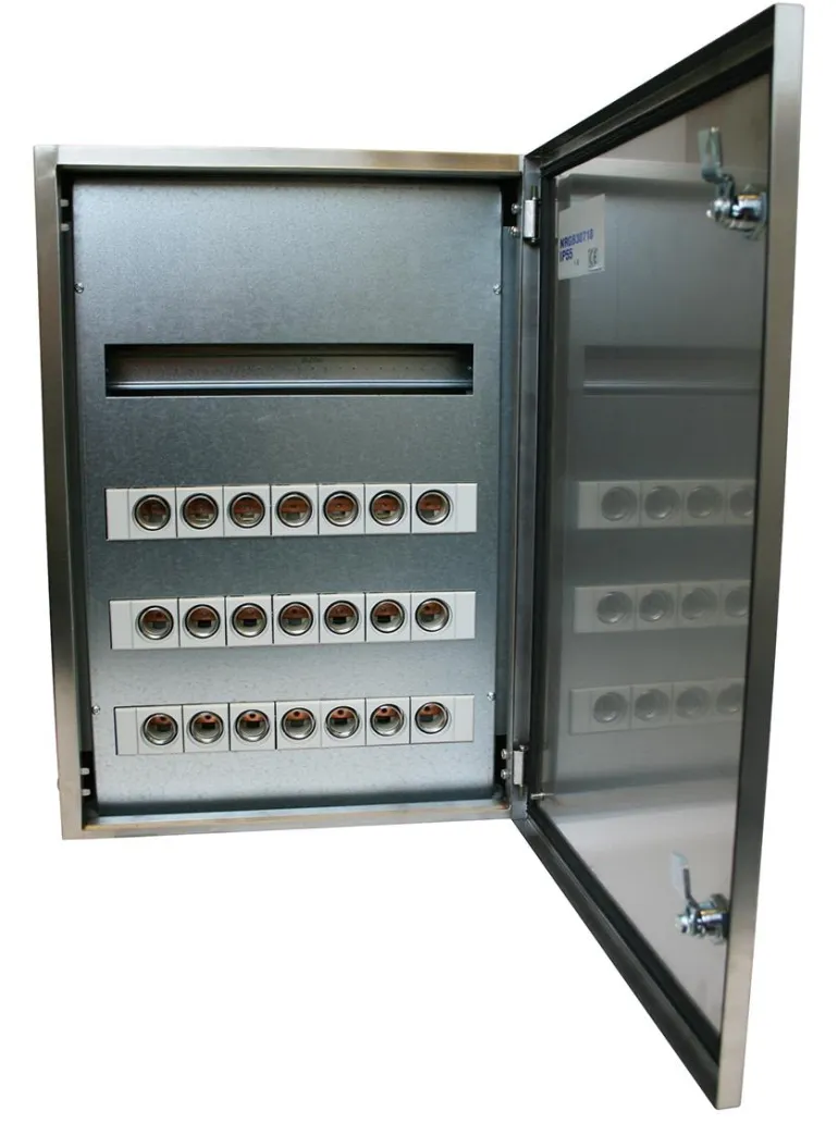 Ruostumattomasta teräksestä valmistetut kotelot, joita käytetään maataloudessa, pesuloissa, ulkona ja muissa vaativissa kohteissa. Kotelot ovat saatavilla vakiokeskuksina sekä varoketaulun ja vakiokeskusten yhdistelmänä.