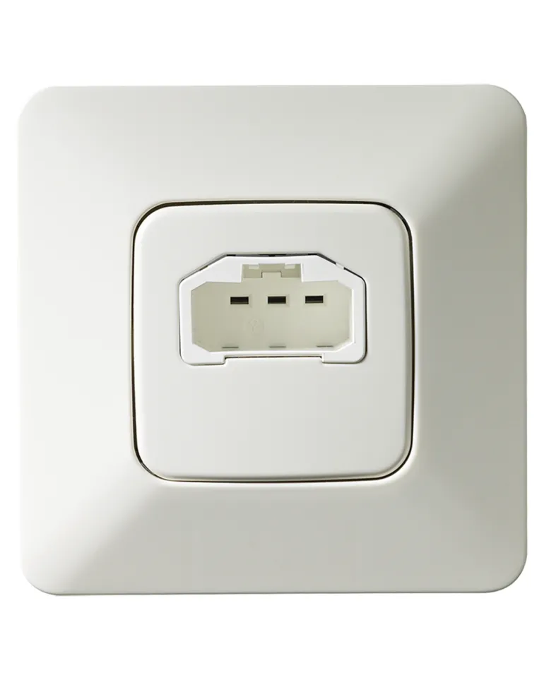 DCL-valaisinpistorasia, seinä, asennus laitelaatikkoon, pikaliitäntä, max 2,5 mm²:n kaapeli.