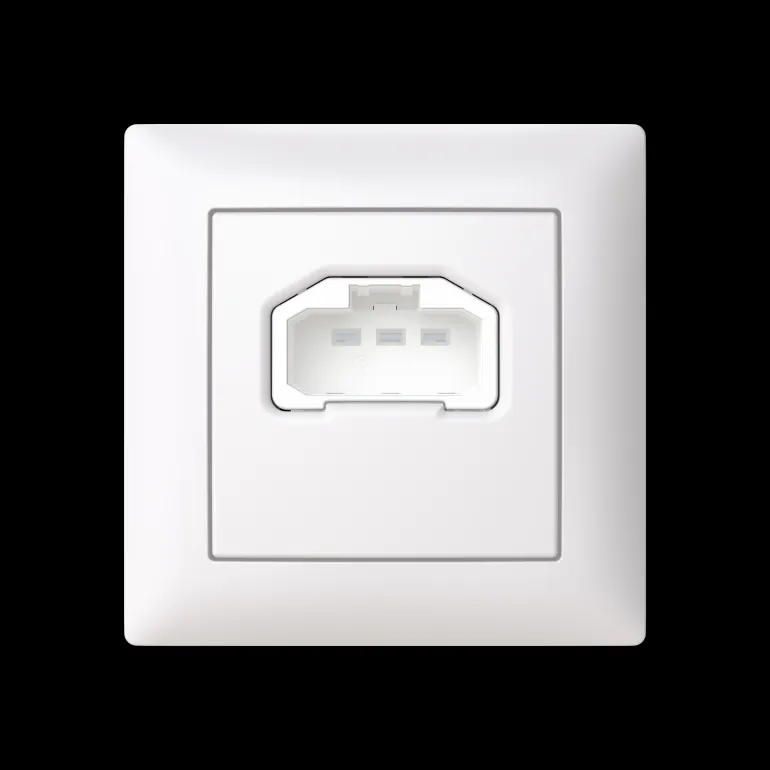 SAGA™ -DCL-valaisinpistorasia, 85×85 mm, valkoinen. Peitelevyn valmistukseen on käytetty biopohjaista muovia. Pinta on kiiltävä ja helppo pitää puhtaana. Valaisinpistorasia on kaksinapainen (P+N) suojamaadoituksella varustettu kaluste asennettavaksi kojerasiaan. Valaisinpistorasian nimellisjännite on 250 V ~ / 6 A. Jousiliittimet mahdollistavat 1,5-2,5 mm² ryhmäjohdon jatkamisen. Muoviraaka-aineessa erittäin korkea UV-suojaus. Valkoinen RAL9003.