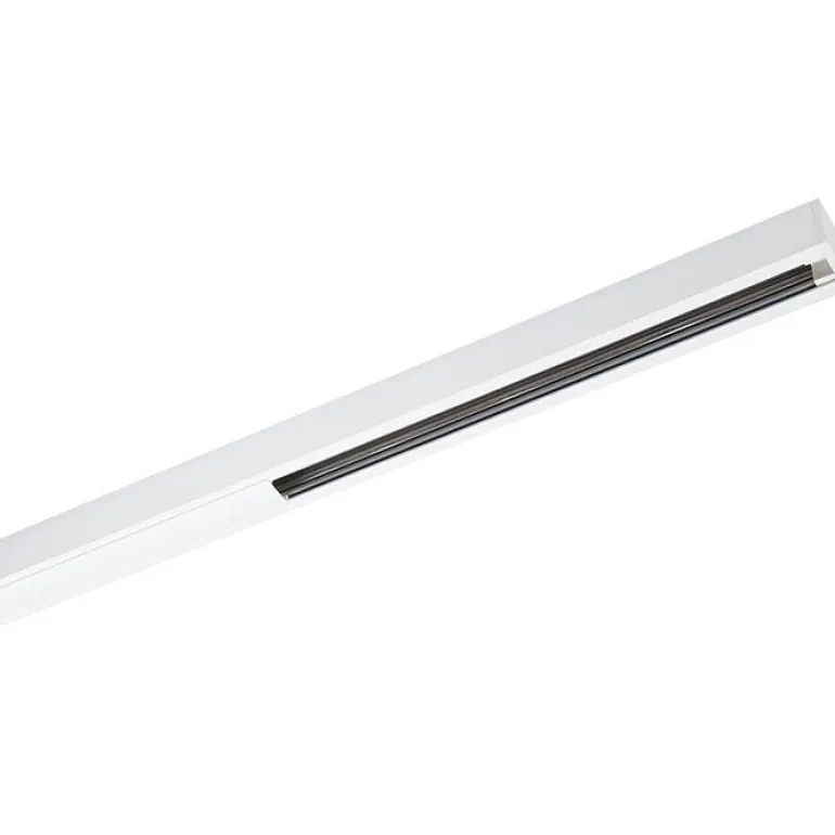 Valkoinen valaisinkisko (230 V), jonka pituus on 2 m. Voidaan leikata tai yhdistää useisiin kiskoihin halutun pituuden saavuttamiseksi. Pinta-asennukseen sisätiloihin. Eristysluokka I.