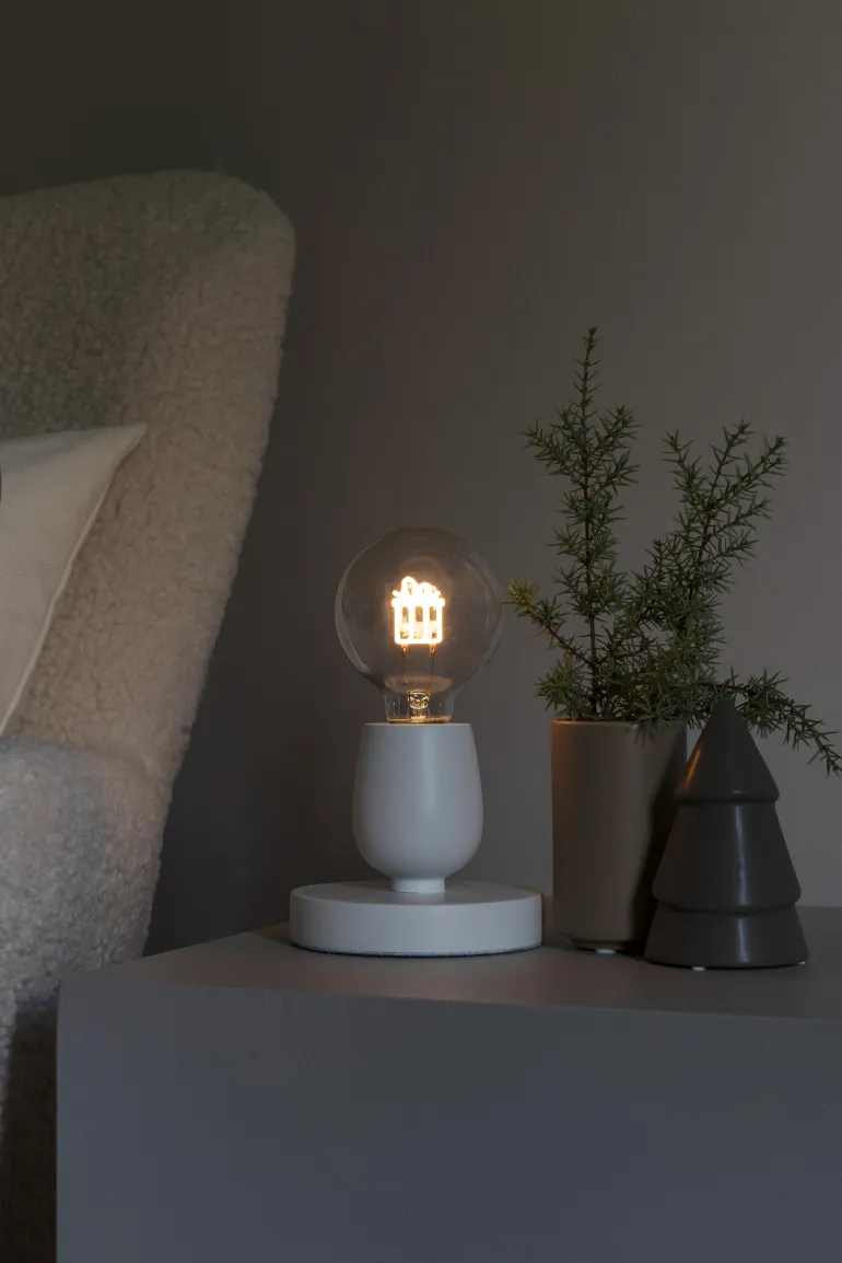 Konstsmide 1814-200 on puinen valokoriste, valkoinen. 1 kpl LED lahjapakettimotiivilla (valon väri amber).